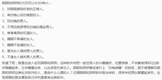 “之前用过陌陌一段时间,我的目的倒不是那么“不堪”啊,就是交朋友,只是太坑了,不是卖茶叶的就是酒托。”唐超说出了自己的心酸故事。