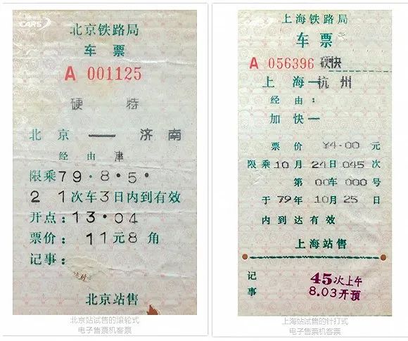 经(原)铁道部批准,于1979年7月20日在上海站和北京站试售计算机客票。这是中国铁路的首批计算机打印客票,称为I型票。这是铁路售票方式的改革,引发了中国铁路售检票系统的巨大变革。