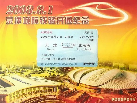2008年8月1日,京津城际铁路开通运营,并正式使用磁介质客票,统一软件5.0版。由于运营的动车组均为“和谐号”,在客票右下角印有“和谐号”字样,这种客票使用至2013年。