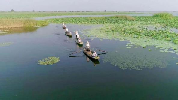 人人都说天堂美,怎比我洪湖鱼米乡,《洪湖赤卫队》中韩英、刘闯的理想,正在洪湖人建设家乡的坚定步伐中,一步步变为现实。当代的洪湖,在绝美的生态景观映衬下,通江达海,气象万千。