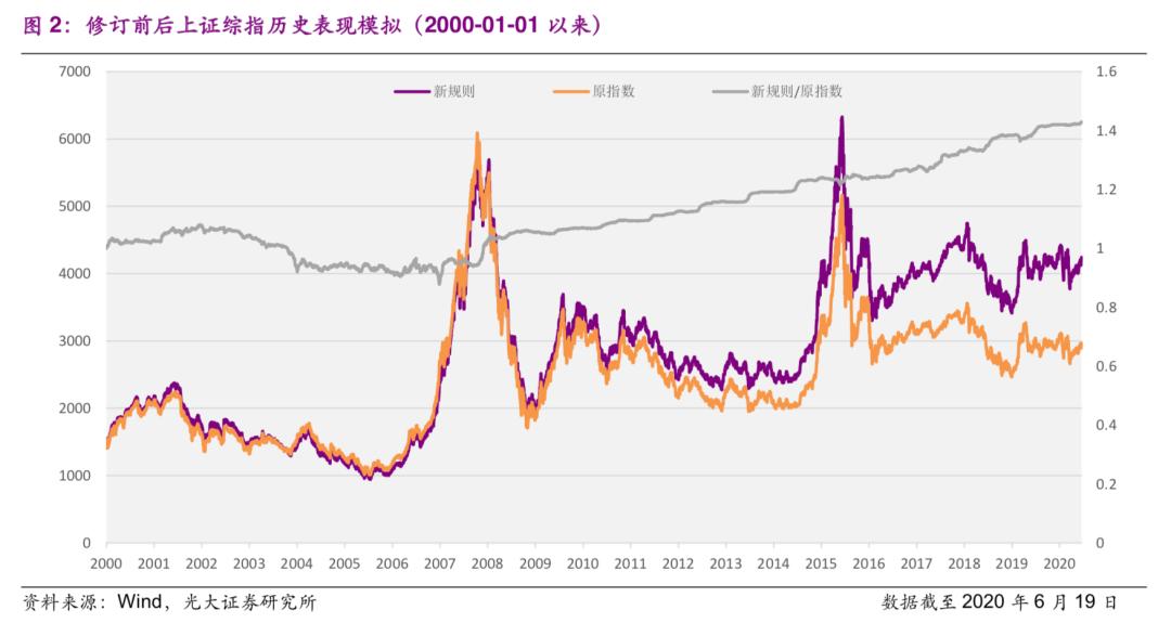 光大证券金融工程团队认为,修订后上证综指收益能力略有改善。该团队参考上证综指新的编制方案,模拟新上证综指,可以看到整体的收益有所提升:修订后的上证综指自2000年以来年化收益为5.47%,相比原始指数的3.67%有了较为明显的提升(截至6月19日),作为具备A股市场晴雨表功能的指数,将一定程度上提升投资者的信心。