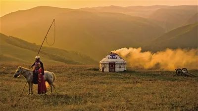 朱耀东形容说,站在陈巴尔虎旗茫茫草原上,犹如走进了绿色的海洋,除了头顶一片的湛蓝,脚下铺展开来的是一望无际的绒绒绿毯,清风拂过,有节奏的起伏像是微涌的绿浪。没有任何屏障,铺陈远方,直与天穹相连,那么的高远,那么的辽阔。当然,吸引朱耀东的不止美景,还有那些世世代代生活在草原上热情的牧民和传统的蒙古族文化。在牧民大哥的家中,大碗喝酒、大口吃肉的畅快淋漓,载歌载舞、热闹欢腾的淳朴民风,底蕴深厚、耐人寻味的文化故事,这一切,都感染着他。清晨起床后,欣赏草原日出;日上三竿时,和老额吉一起挤牛奶,向老阿爸学习骑马,放牧牛羊;伴着落日余晖,聆听草原天籁,纵情欢歌……体验过地道蒙古族布里亚特人家的生活,朱耀东明白了,蒙古族敬仰长生天,对从小赖以生存的草原有着难以言说的深情和眷恋,因此,他们也格外珍惜这片绿色的摇篮。这也让他对大草原、对蒙古族有了更深刻的认识和理解。