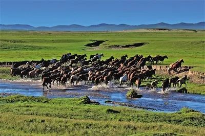 茵茵碧草,悠悠白云,天空湛蓝如洗,奔驰的骏马和成群的牛羊……