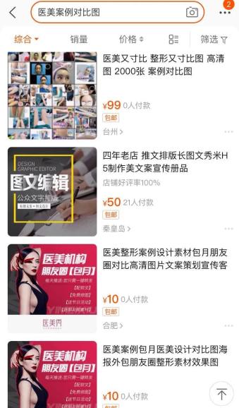 “电商平台上有很多‘医美案例对比图’商品,有的机构还专门组织人,去悄悄拍摄其他机构整形者的术前照,再通过化妆、ps合成‘整容照’,宣称是自己的案例。”王芮透露,“如今PS技术发达,哪怕不整容,要做出这样的照片对比,在技术上也不是难事。”