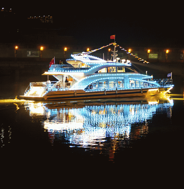 夜航:上海路码头—皇泽寺—四号桥—上海路码头,往返约需50分钟左右。