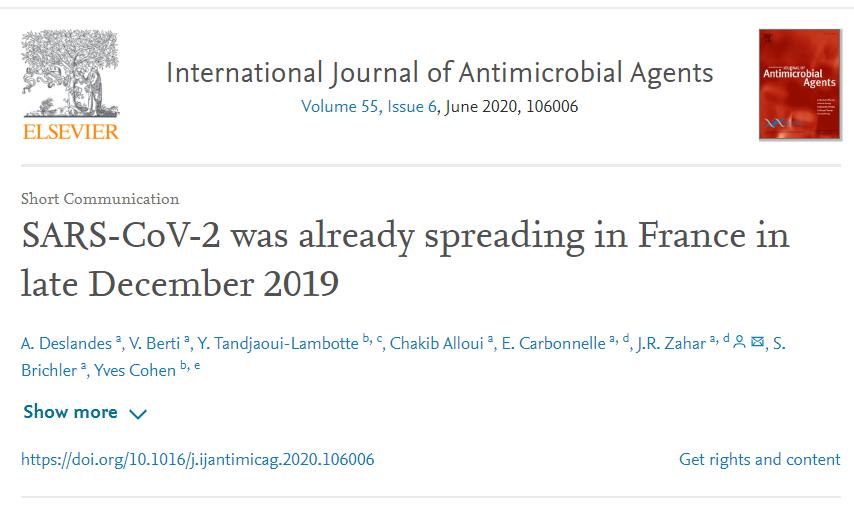 ◆ 国际权威杂志发表研究报告称新冠病毒去年12月已在法国传播