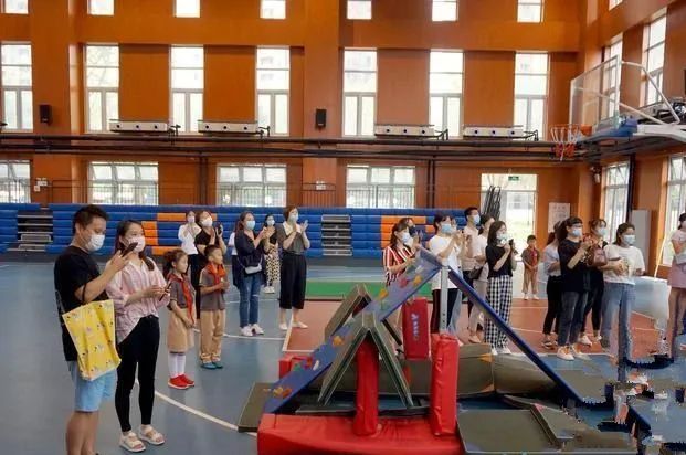 家长们参观了学生阅览室、书法教室、美术教室、录播教室、3D打印室、机器人室等部室,近距离感受高配置的教学条件。在室内体育馆,家长们观看了学校“快乐体操”社团的训练项目,为孩子们精彩的技艺鼓掌喝彩。在课间操时间,欣赏着师生们充满动感的校本课间操,家长们进一步感受到师生们的阳光与活力。