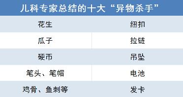 儿科专家根据近年来的接诊情况,总结出了十大“异物杀手”,几乎全是家中的常见物品——