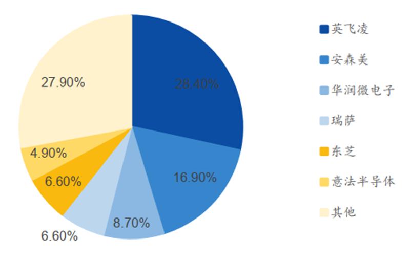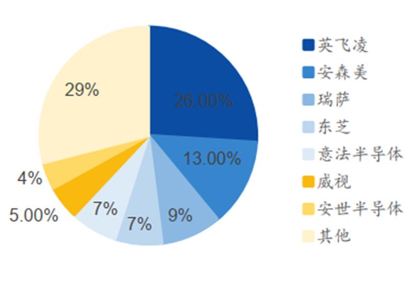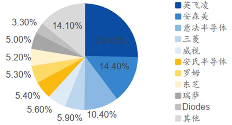 MOSFET 市场集中度高,我国企业亦参与角逐 。据 Yole 统计,2019 年全球功率 MOSFET 市场规模为 62.59 亿美元。在全球竞争格局中,功率 MOSFET 的市场份额几乎集中在国际大厂手中,仅英飞凌、安森美和瑞萨三家企业的市场份额就接近 50%。