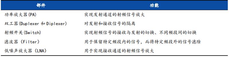 受益于 5G 发展,射频前端价值量显著提升 。射频前端是移动通信系统的核心组件,主要起到收发射频信号的作用,包括功率放大器(PA)、双工器(Duplexer 和 Diplexer)、射频开关(Switch)、滤波器(Filter)和低噪放大器(LNA)五个部分。射频器件是无线连接的核心,凡是需要无线连接的地方必备射频器件。