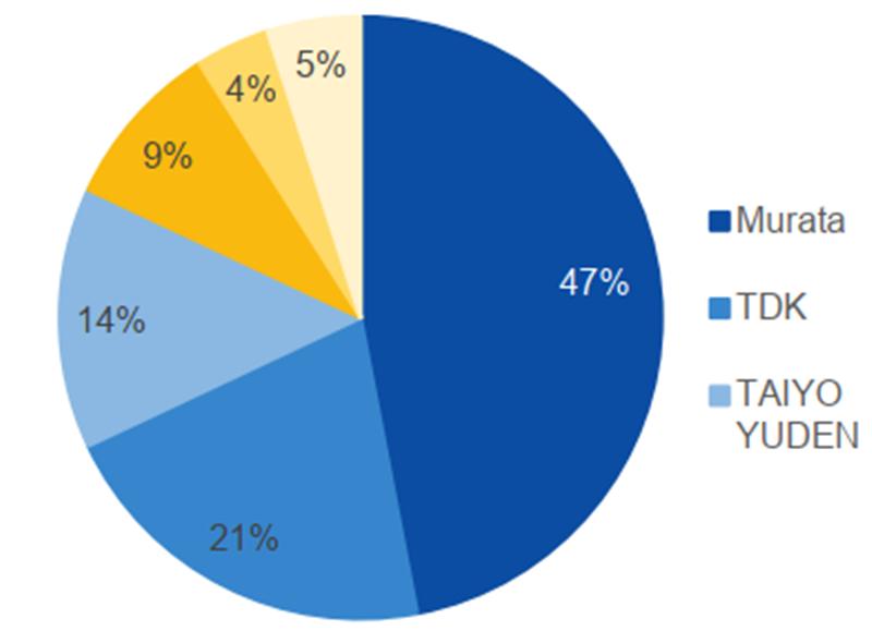 SAW 主要应用于低频段,在 4G 时代及以前是应用最广泛的滤波器。市场的领先者主要是村田 Murata、TDK、太阳诱电 TAIYO YUDEN、Skyworks、Qorvo,五家合计占据全球约 95%份额;