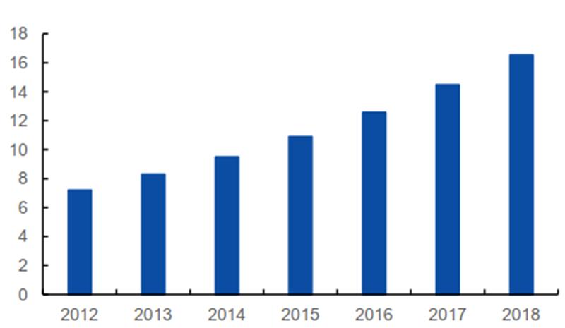 国内市场上,2018 年 IGBT 市场规模将近 162 亿元,同比 2017 年增长 21.7%。市场占有率方面,国际巨头占据着我国 IGBT 市场很高的份额。