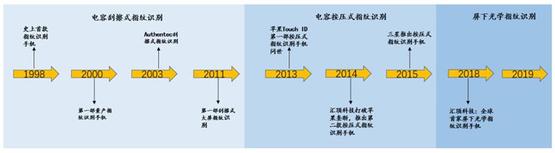 世界上第一部指纹识别手机是 1998 年西门子推出的样机,为刮擦式指纹识别,之后10 年市场上又陆续推出了几款刮擦式指纹识别手机,但这类识别方法耗时久、不美观、成本高,市场效果不达预期,热度不够,因此指纹识别一直处于缓慢发展阶段, 市场也一直处于 FPC 和 AuthenTec 竞争阶段。