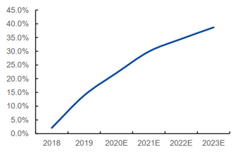 射频开关市场近些年一直保持着高速增长态势,2018 年达到 16.54 亿美元,随着 5G的发展,射频开关的市场需求将会进一步增长。根据 Yole 数据,到 2023 年市场规模将接近 40 亿美元,复合增长率接近 20%。