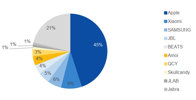 根据 Counterpoint Research 发布的 2019 年第三季度数据,全球 TWS 出货量及销售额前十的品牌中,除主流手机品牌外,国内的恒玄科技在专业音频厂商中拥有较高占有率,如 JBL、Skullcandy。除此之外,市场份额紧随其后的Anker、 Tzumi,以及 AKG、漫步者、万魔也是公司的终端品牌客户。