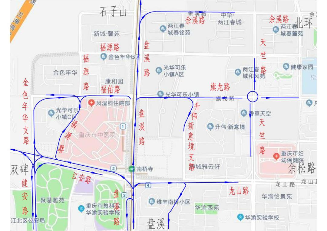 盘溪路北延段→南桥寺平交口→江安路(健安路)