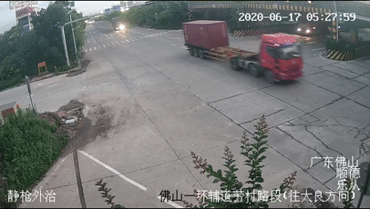 近日清晨5时30分许,在佛山市顺德区乐从镇钢铁世界旁的一环辅道十字路口发生一起2辆大货车相撞的交通事故。