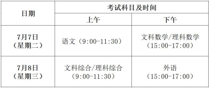 招生统一考试时间安排