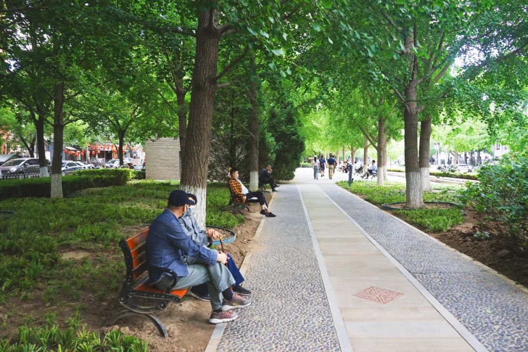 在方家胡同口,我们也利用不大的道路,种植玉兰、萱草,增设了小节点空间。哪怕是坐在这么小的街角广场,居民也可以坐在花草旁,展开交流。