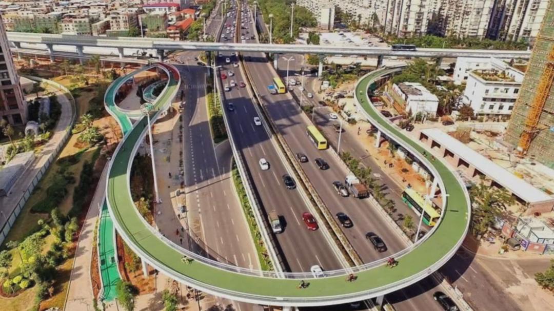 这是全国首条在城市中建立的快速自行车道。它像高架桥一样,在上面骑车,能感受到城市不同的风光,一开始的设想只是用来上下班通勤,但现在越来越多的市民会专门跑到这个地方来骑自行车。