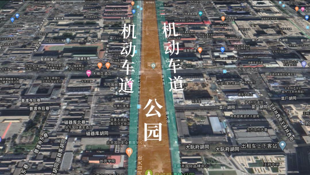 这个带状公园,在地理上为市民保留了皇城根的记忆。曾经的皇城城墙虽然没了,但是这种城市边界却以带状公园的形式保存了下来。