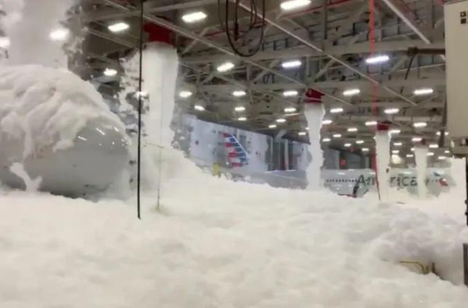 原标题:《机库消防泡沫大量喷出,美航两架787被洗“泡泡浴”》