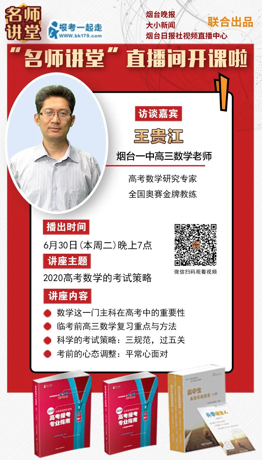 原标题:《“名师讲堂”昨晚高考数学专家王贵江分享科学考试策略,7.2日(周四)晚7点烟台一中化学名师侯延宁谈化学新高考变化》