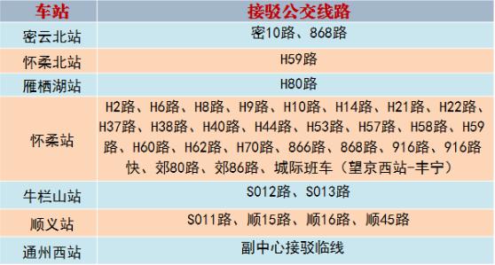 怀柔站,设置公共自行车、小汽车停车位和20余条公交线路;