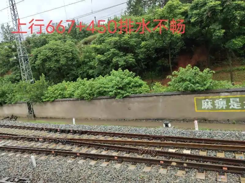 现场巡查情况不断反馈:K98 +500侧沟汇水较大、焦柳线K677+750上行侧沟积水多……