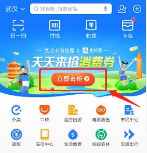 方法一:打开支付宝APP,直接点击首页消费券板块。