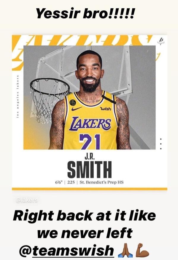 2日凌晨,湖人官方推特发布了一张图片,正式宣布他们已经签下了后卫JR·史密斯,JR将在湖人身穿21号球衣。