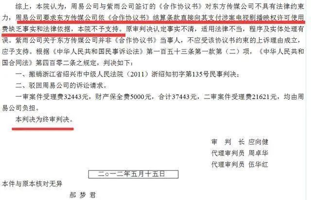 一审判周易赢,对方不服继续上述;二审及终审周易的要求又被驳回。