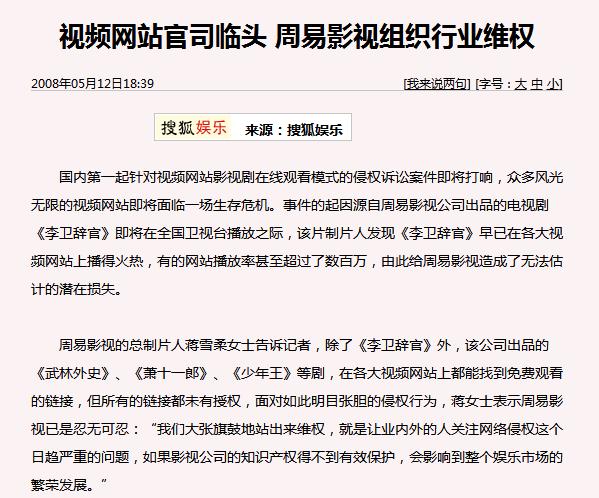 5年间,还发生了2008年《李卫当官》被侵权,周易又损失了一大笔钱。