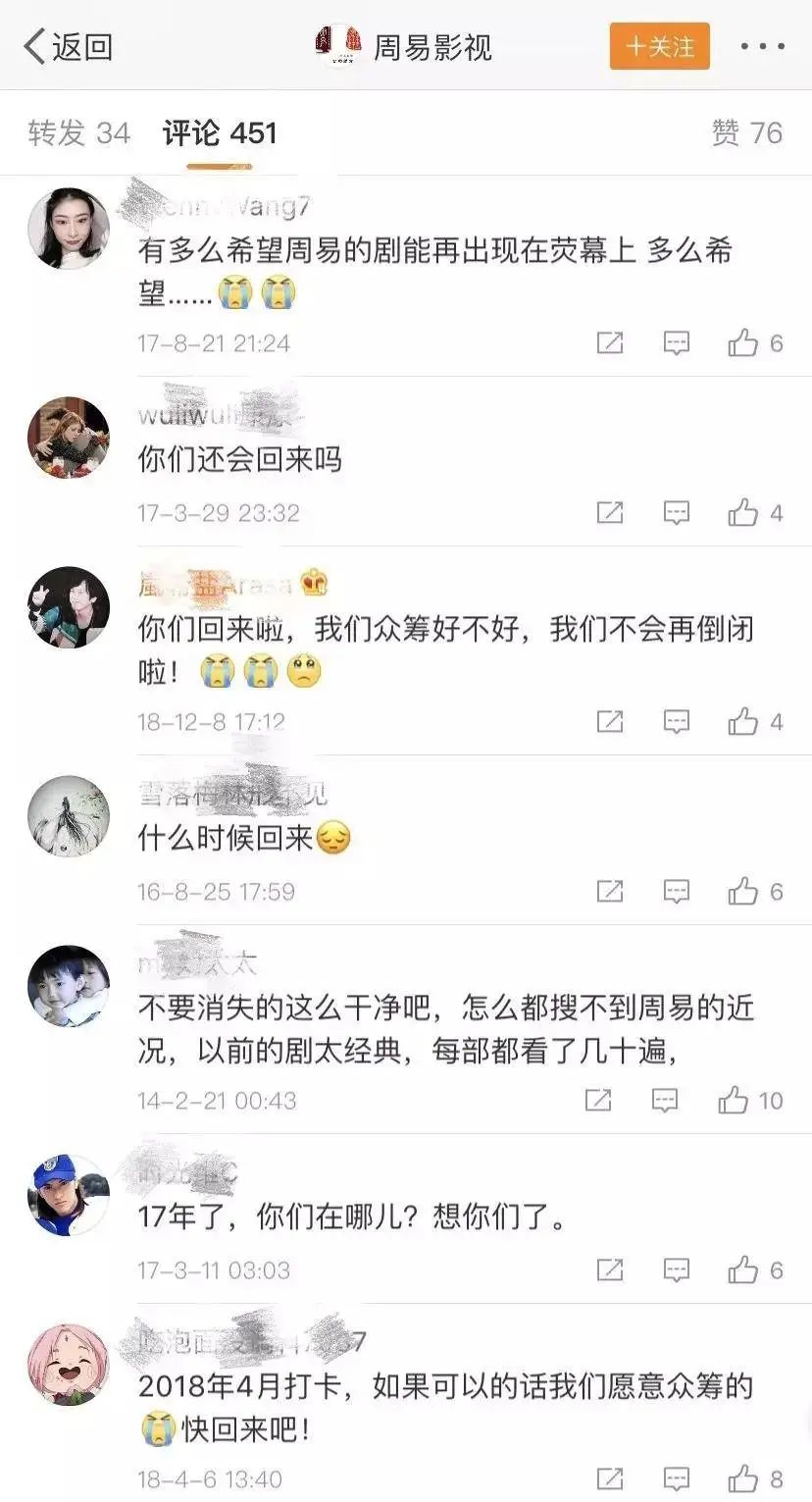 周易的官微至今也没有注销,不过任底下很多剧迷千呼万唤也不出来。
