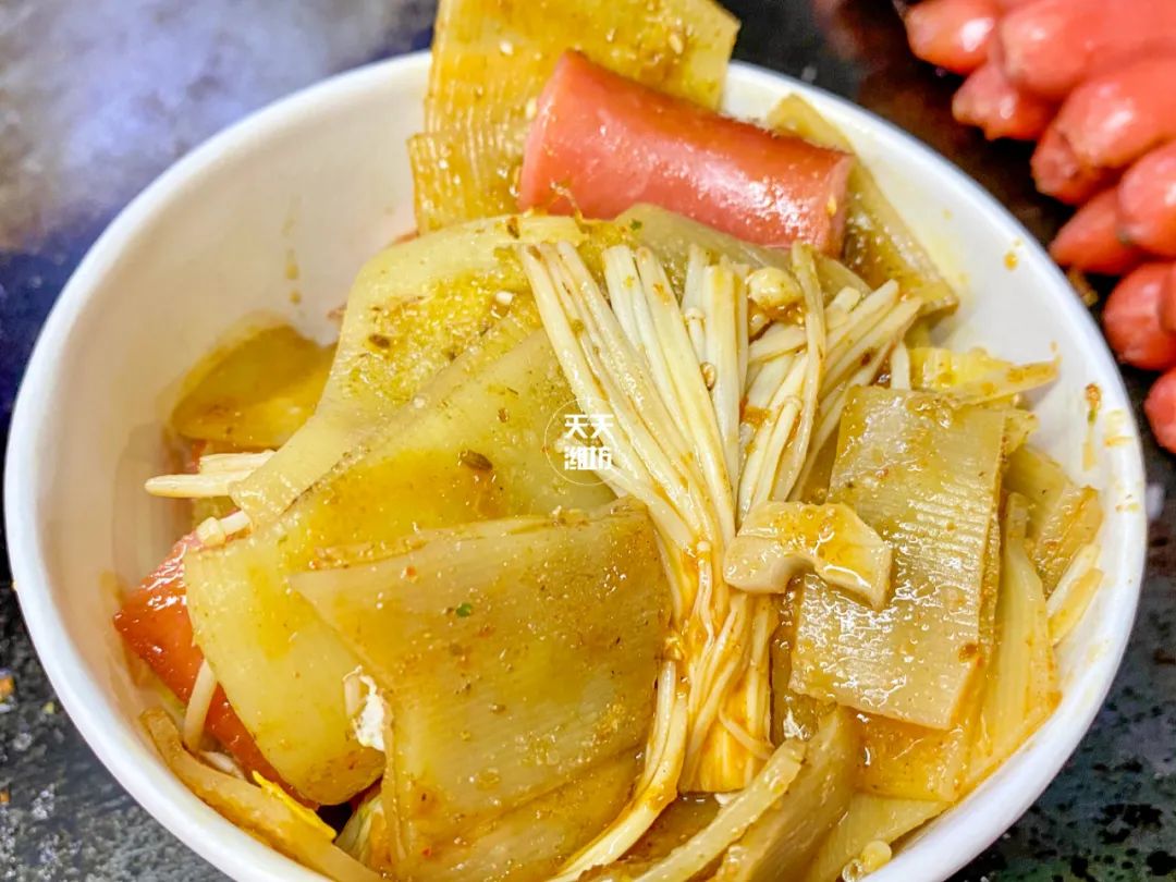 标配是鸡蛋+烤肠,再来一撮金针菇,