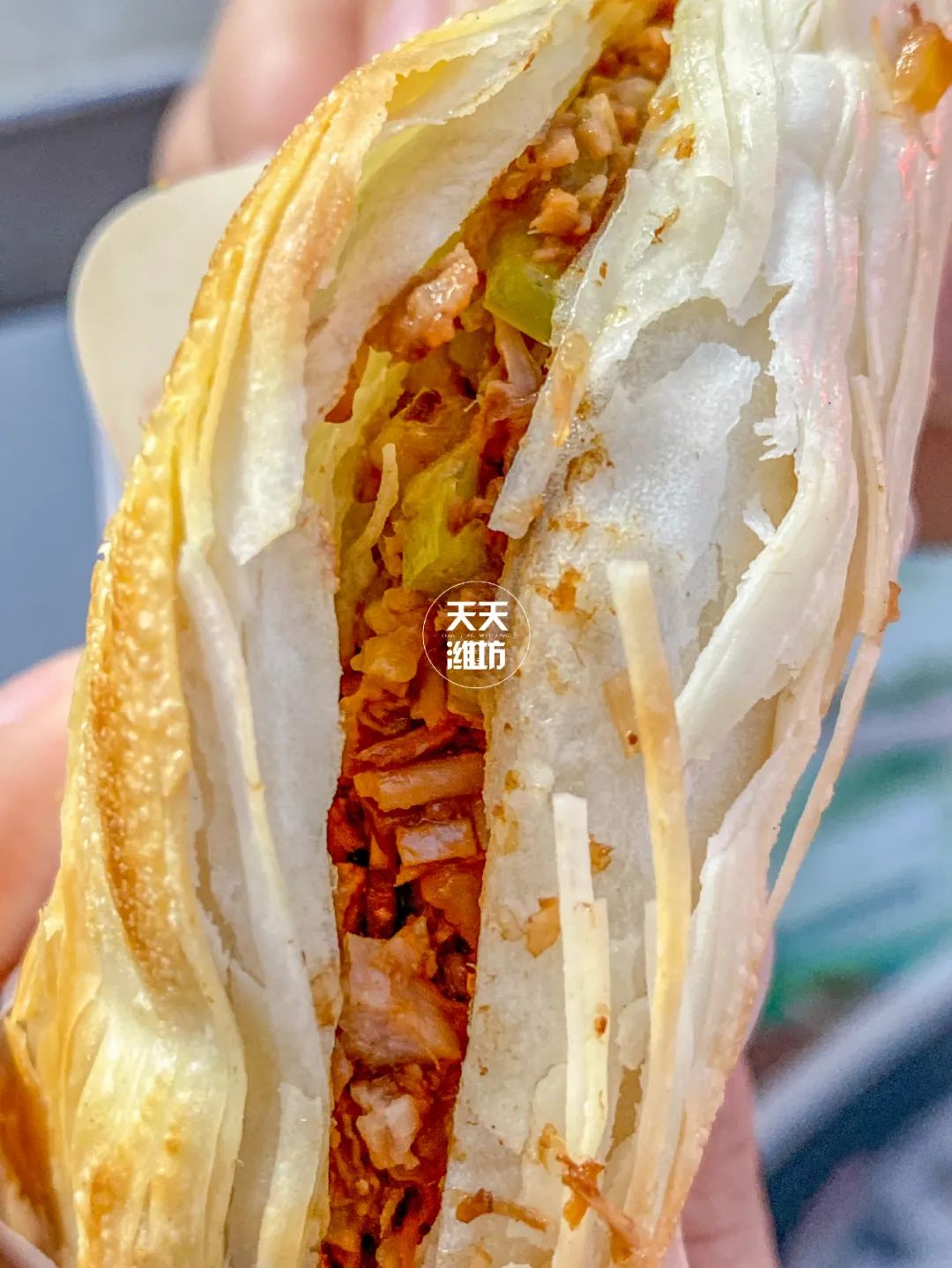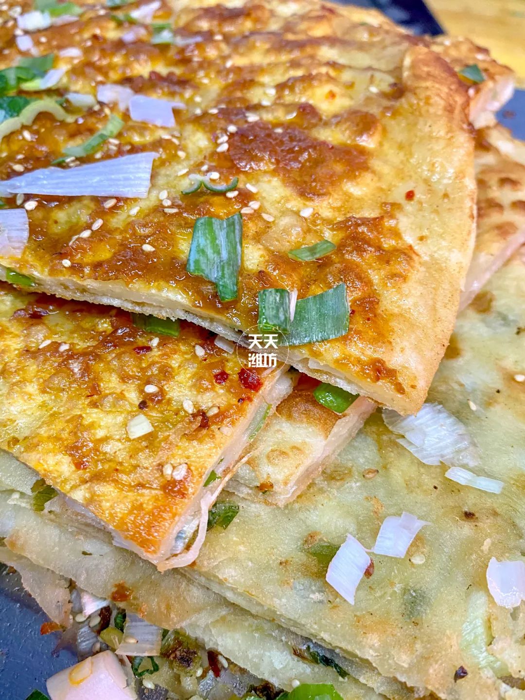 烤的酥脆的面饼中间夹满满一层肉,
