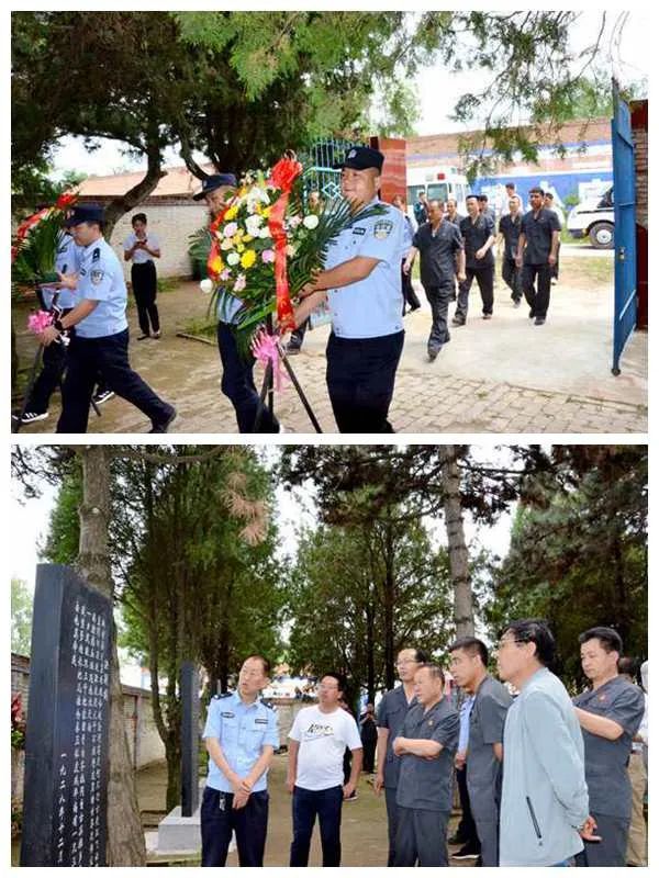 在王孝锡烈士陵园,党员干警在王孝锡烈士纪念碑前肃立默哀,向烈士敬献花篮,缅怀革命先烈的丰功伟绩,表达崇敬之情。