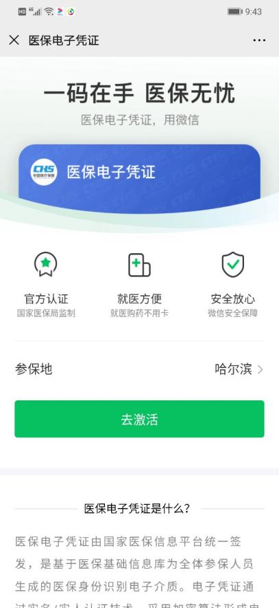 记者从市医保局了解到,2日,哈尔滨医保电子凭证应用正式上线。哈市市本级城镇职工、城乡居民参保人可通过“哈尔滨医保”微信公众号、微信城市服务、支付宝等多种渠道免费激活领取医保电子凭证,通过手机展示电子凭证码即可看病购药,享受医保待遇。