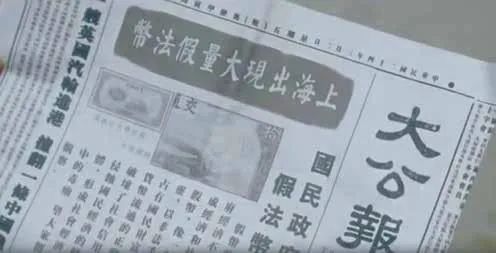 最后还有一些细节,比如片中的一张标题为《上海出现大量假法币》的《大公报》,定格一看,日期是民国二十四年三月二日。乖乖,法币得到当年年底才发行呢,这三月份出来的“法币”,能不假吗?好几次纸币特写,居然都是同一个编号。下次拍摄新剧前,建议道具组先到银行博物馆参观学习一下。