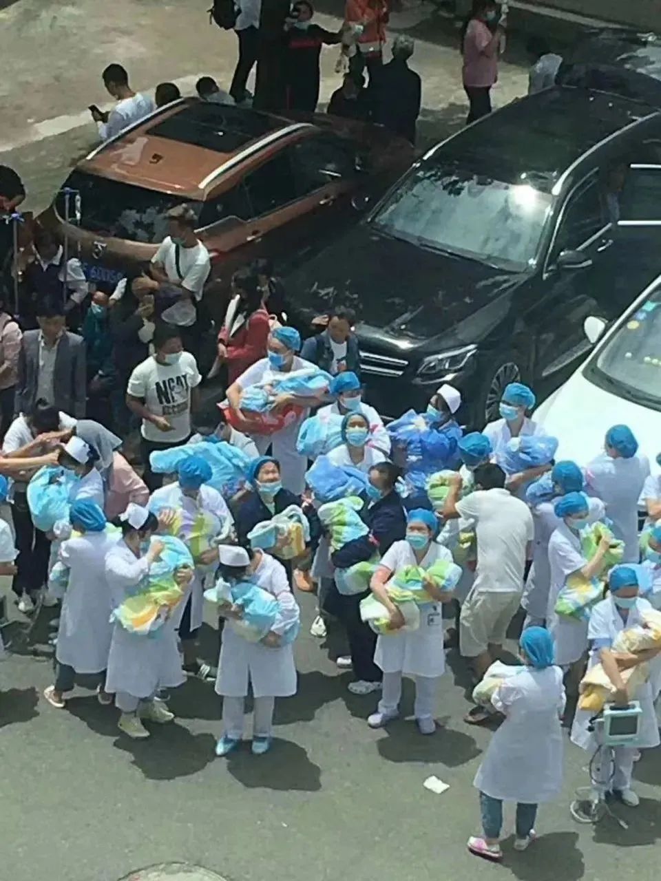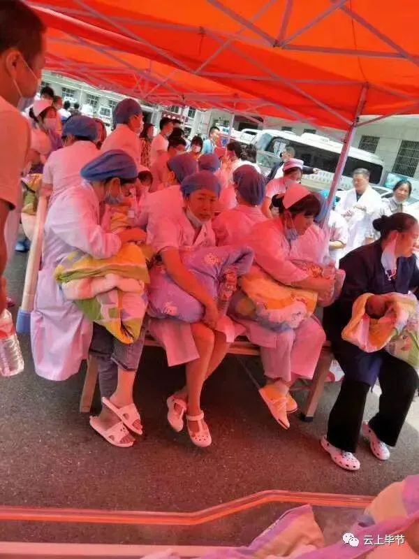 一组“地震瞬间医护抱26名新生儿下楼”的