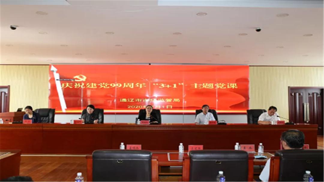 ◉ 为庆祝中国共产党成立99周年,进一步提升机关党建工作水平和党课学习教育实效,7月1日,通辽市市场监督管理局开展庆祝建党99周年“3+1”主题党课活动。