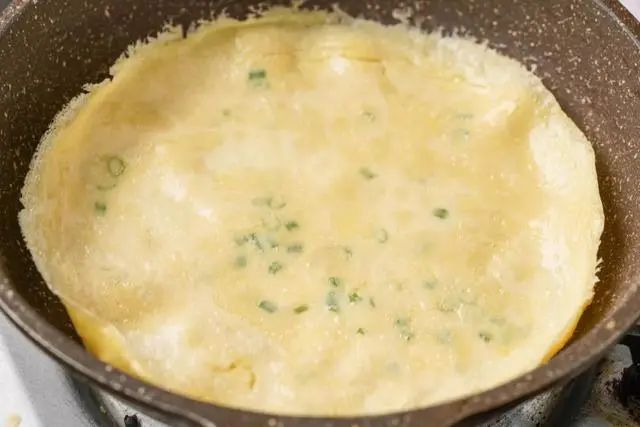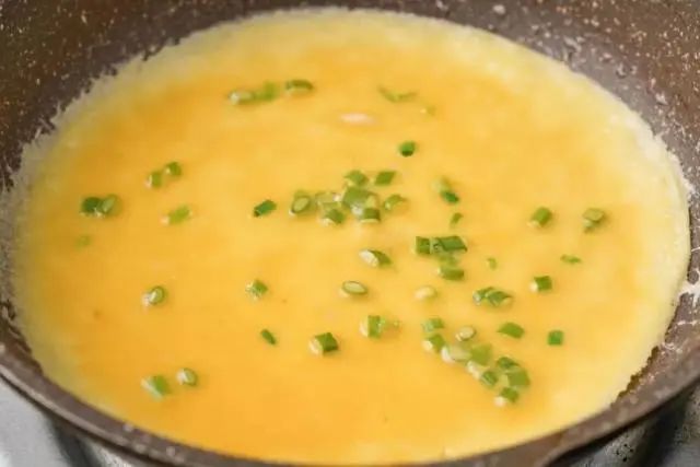 1、打3个鸡蛋、加4g盐、放70g中筋面粉、加3g淀粉、倒入80g水顺时针搅拌,知道形成顺滑的面糊,加入适量葱花。