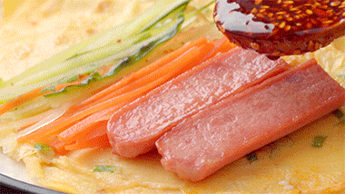 酥脆的饼皮,配上柔软的鸡蛋,抹上甜面酱,最后再混入一股葱香,直击灵魂深处!