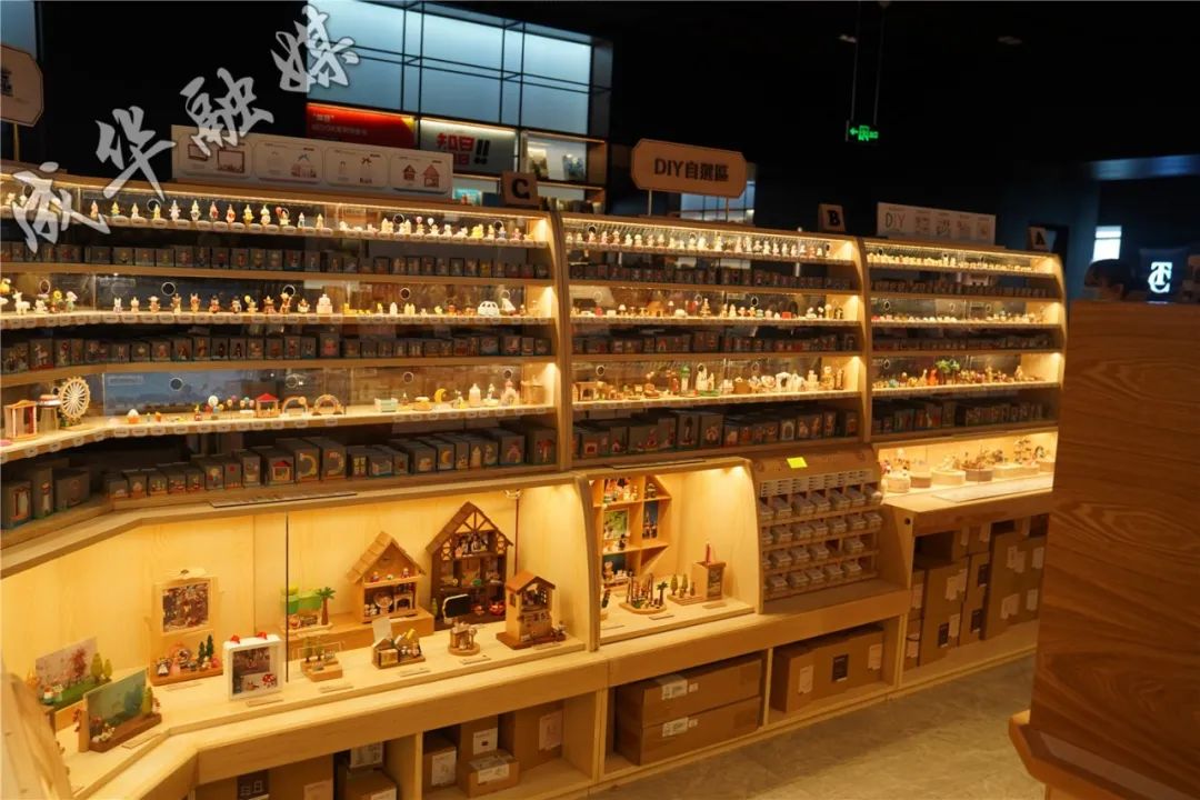 以二楼生活美学区域为中轴,一边是独一无二的DIY手工制作区,另一边则是生活类产品和新奇玩具售卖区,面膜面霜、香薰蜡烛、盲盒、面具等这些新颖而充满魅力的玩意儿,真是让心生欢喜。