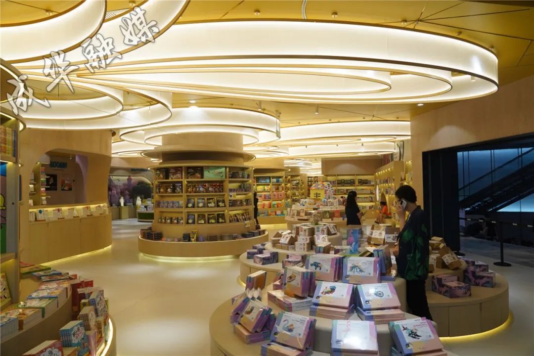 继续往里走,书店的空间容量渐渐得以体现。书店共有三层,总面积近万平方米,集聚了图书10万种30万册、文创及关联业态25个、5000+图书推荐、50+主题场景、各类主题图书展、超2000平方米专业儿童书店……