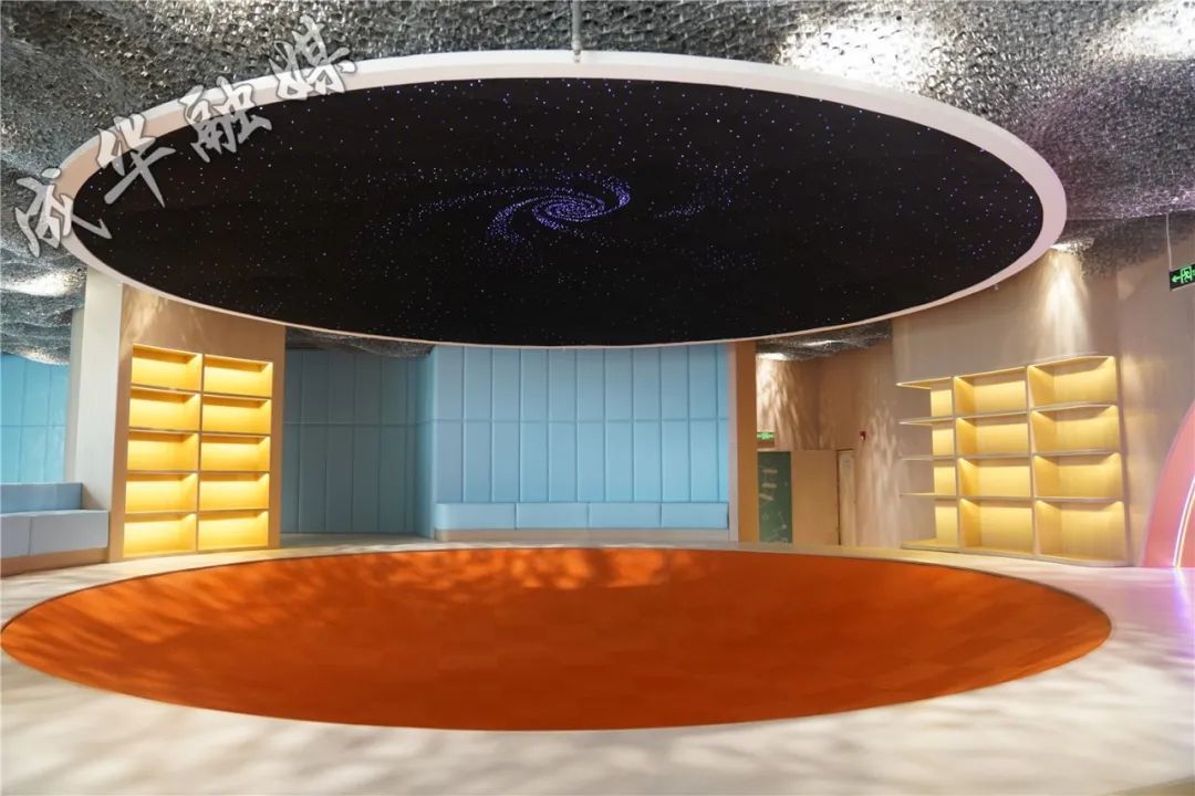 这里,以极具想象力与无限可能的“圆”为设计主线,打造呈现了一个阅读区、亲子餐厅、游乐区三大板块为一体的儿童成长空间。