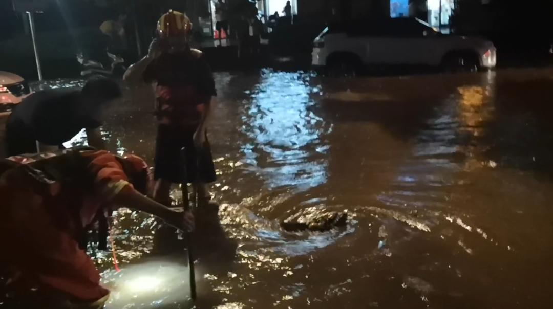 7月3日21时20分许,南昌市经开区海棠南路附近发生内涝,多名群众被困,等待救援。