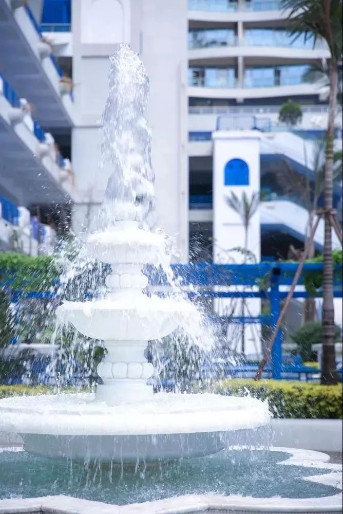 白砖蓝墙、欧式喷泉、海边灯塔,