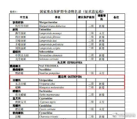 《国家重点保护野生动物名录》(征求意见稿)正在公开征求意见。有人在当中发现了一个熟悉的名字——螺蛳,并且建议保护级别为“二级”。