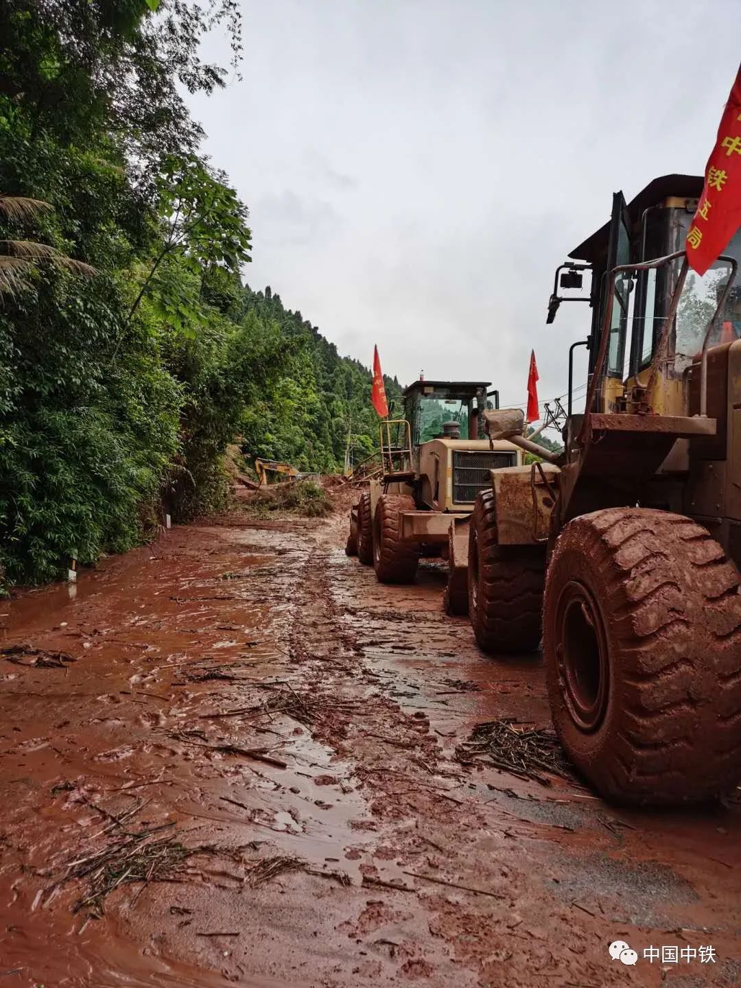 6月12日,受到连续的大雨冲刷,遵义市播州区团溪镇生产村道路边坡坍塌,塌方的山体堵塞了村里出行的唯一道路,给当地群众带来极大不便,中国中铁遵余高速路面标四工区(中铁三局)果断出动装载机与运输车辆进行清理,经过近8个小时的连续作业,道路终于抢通。7月2日,受强降雨影响,易峨(G357省道)公路易门至浦贝段发生泥石流,路面堆积淤泥,造成单向交通中断。玉楚高速土建9标(中铁八局)闻讯而动,迅速组织救援队伍赶赴现场,疏散受灾路段处的车辆和人员,做好前期处置工作。经过近4个小时的努力奋战,完成路面淤泥清扫工作,实现道路正常通行,安全隐患消除。